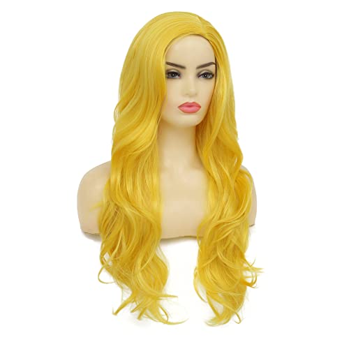 Parrucca gialla Parrucca lunga e ondulata Parrucca gialla ideale per feste a tema di carnevale, costumi di Halloween, balli in costume e uso quotidiano