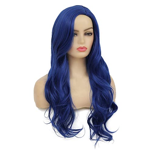 Parrucca lunga riccia ondulata blu donna lato naturale Cosplay Parrucca in fibra sintetica Parrucca resistente al calore Parrucca sostitutiva