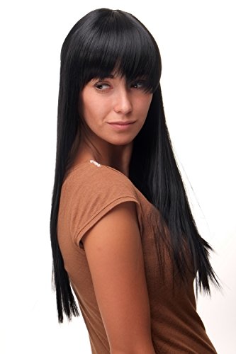 WIG ME UP - Parrucca moderna Colore Nero Nero Carbone, Coda di cavallo, Taglio dritto Capelli lisci eleganti 60 cm, GFW373-1