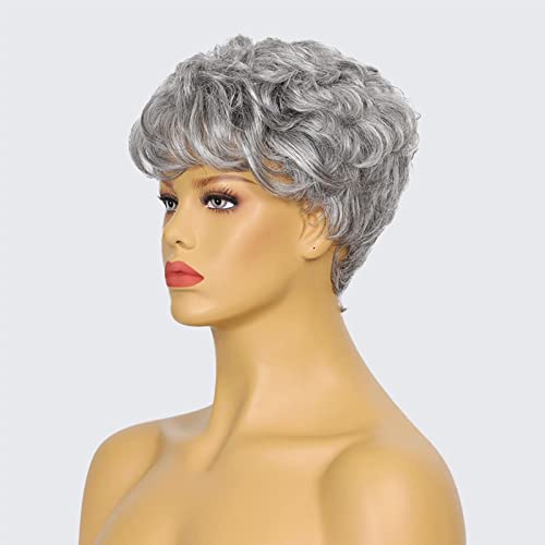 Parrucca Pixie Cut con frangia Parrucca corta grigia Parrucche corte ondulate a strati per donne 9.4in