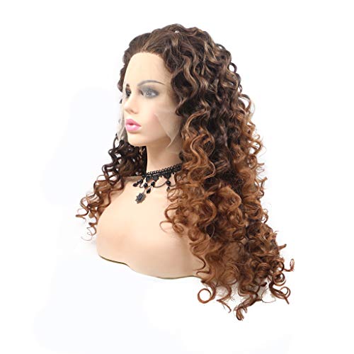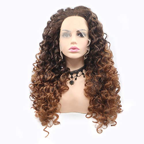 XL- Parrucca riccia crespa marrone sintetica Parrucca piena sintetica afro per parrucche ricci parrucche nere per capelli resistenti al calore con cappuccio per parrucca