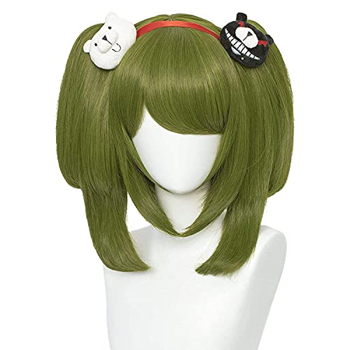 Parrucca verde + 2 clip di orso Anime trecce Cosplay parrucca per Monaca Towa con coda di cavallo staccabile Lolita capelli con frangia per festa di Halloween + Cap