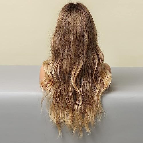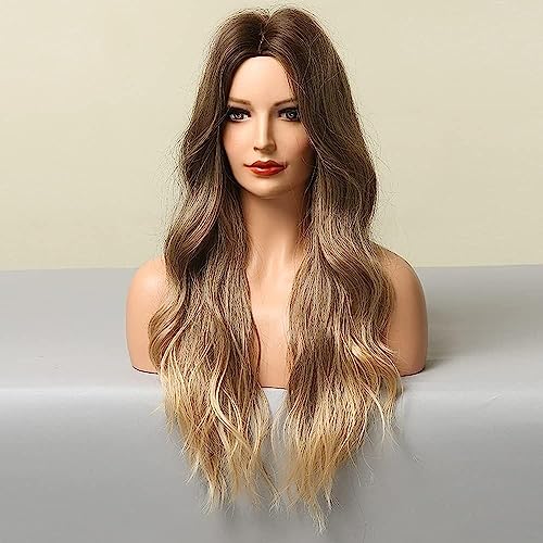 Parrucche bionde ombre lunghe 24 pollici per le donne Parrucche ondulate naturali con radici castano scuro Parte centrale Parrucca sintetica resistente al calore da festa quotidiana