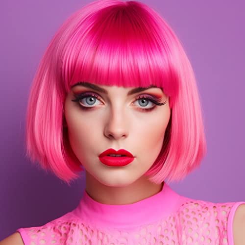 Parrucche colorate confezione da 6, parrucche corte con capelli bob al neon colorate con occhiali da sole a forma di cuore senza bordo, per donne e ragazze, cosplay, feste, addio al nubilato