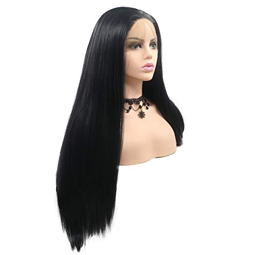 Parrucche frontali in pizzo fatte a mano di colore nero naturale per Drag Queen capelli lunghi lisci da donna Cosplay parrucche sintetiche di ricambio attaccatura dei capelli naturale parte centrale