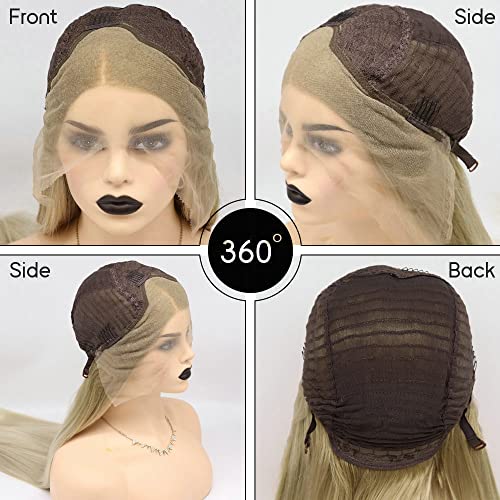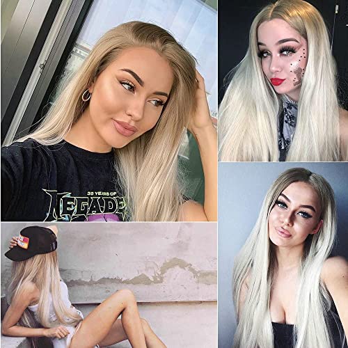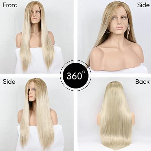 Parrucche frontali in pizzo sintetico per capelli lunghi biondi sfumati naturali per donne e ragazze di ricambio biondo Ombre platino Cosplay parrucche da sposa