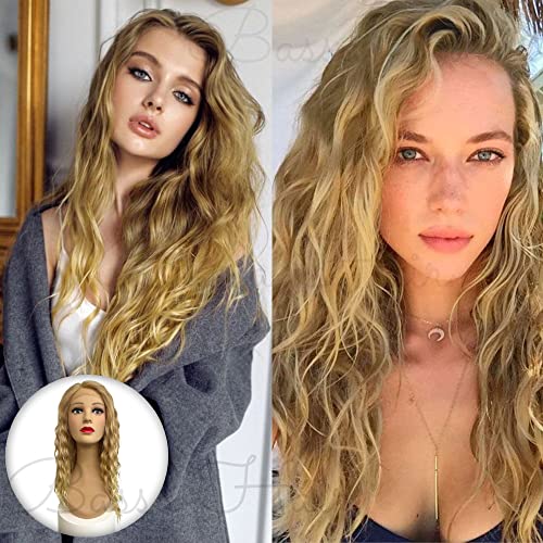 [Materiale della parrucca]. Questa parrucca riccia lunga giallo lino è fatta di capelli sintetici di alta qualità, inodore e morbido al tatto, anche meglio dei vostri capelli, la morbidezza dei capelli pelle-amichevole rende la parrucca molto confortevole.