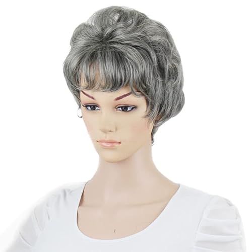 Parrucche Grigie Per Donne, Parrucche Ricci Corte Argento Morbide, Parrucche Per Costumi Da Festa Quotidiana Per Donne Di Mezza Età E Anziane