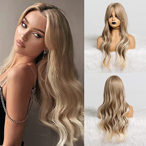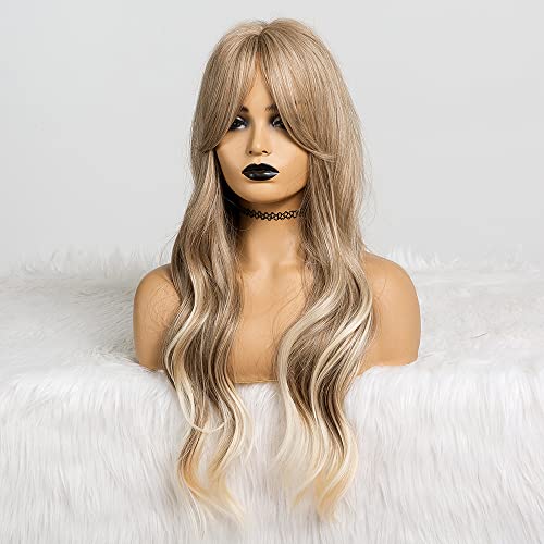Parrucche lunghe per capelli mossi per le donne Parrucca sintetica per capelli ricci BLONDE UNICORN Parrucca Balayage con frangia