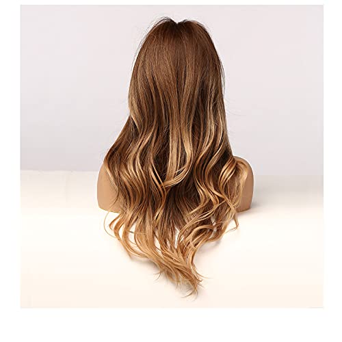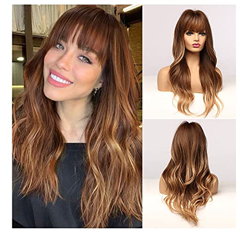 Parrucche ondulate ricci lunghe con frangia | FVCENT Parrucca bionda Ombre marrone per le donne Parrucche capelli lunghi ricci per parrucca da festa quotidiana (Abbronzatura)