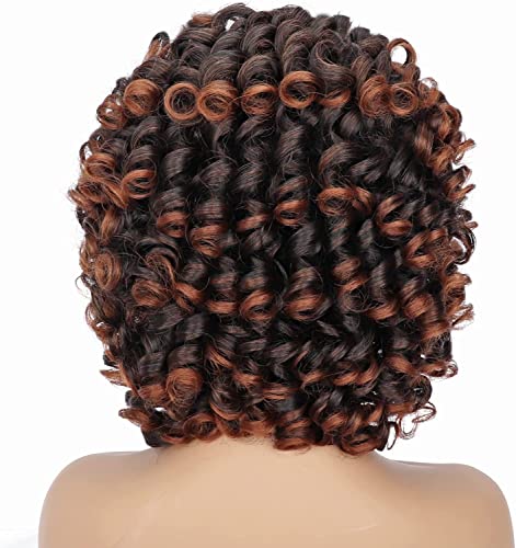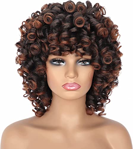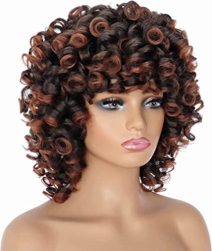 Parrucche ricce corte per donne nere Ricci Afro crespi Parrucca riccia soffice con frangia Parrucche di ricambio per sintetici castani Resistente al calore Per Quotidiano Feste 14 pollici