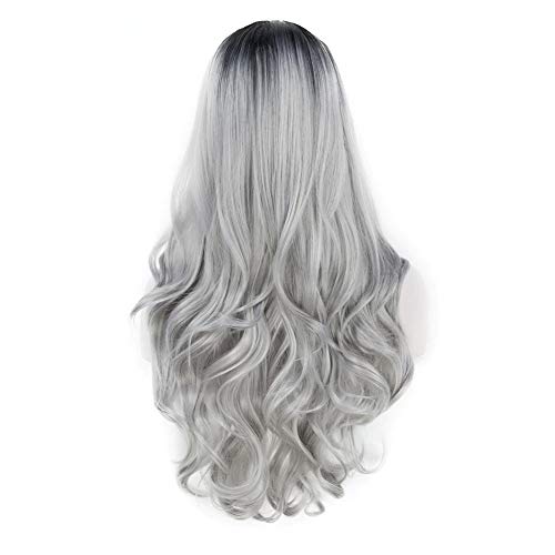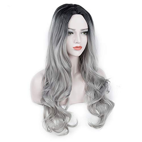 Parrucche ricce a 24 pollici Ombre lunghe lunghezza del corpo del tessuto nero a parrucche sintetiche grigie per le ragazze delle donne