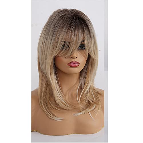 Parrucche Sintetiche Acconciatura A Strati Lisci Lunghi Ombre Nero Marrone Biondo Grigio Cenere Parrucche Piene Con Frangia Per Donne Nere Lc242-1