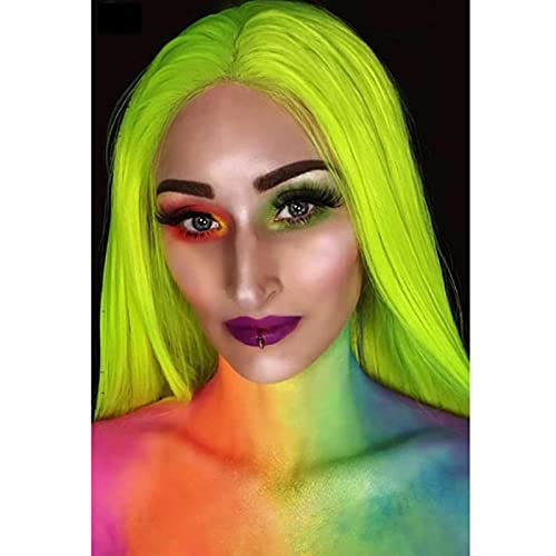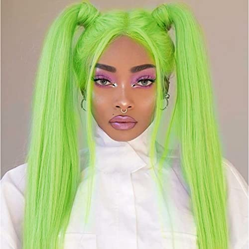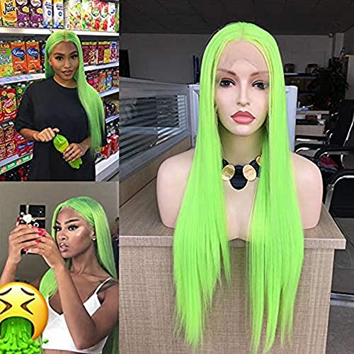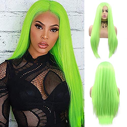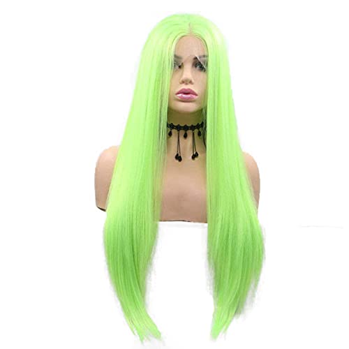 Parrucche sintetiche verdi lunghe diritte del merletto sintetico per le donne parrucca verde fluorescente leggera Parte centrale parrucche verdi pastello del merletto con i capelli del bambino