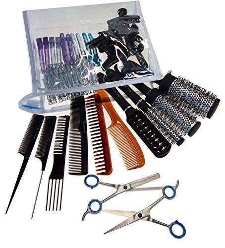 Kit Parrucchiere Professionale | Set 133 Pezzi per Capelli | Forbice 17cm, Sfoltitrice 15cm, 4 Spazzole, 6 Pettini, 12 Pinze, 108 Becchi di Cicogna (96 + 12 Colorati), Borsa Trasparente | by CDD