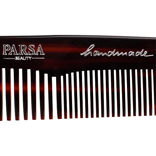 PARSA BEAUTY Pettine per capelli/pettine per barba 16.6 cm in marrone con 2 denti fini e grossolani fatti a mano in Germania realizzati al 100% in plastica riciclata