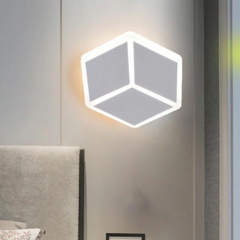 Applique Lampada da parete muro LED a 12W moderna cubo effetto 3D cambia 3 luci Applique a led per interno moderno da parete a muro con forma lampada CUBO TRIDIMENSIONALE 12W illuminazione Lampada moderna da parete con led integrato dalla potenza 12W ideale per l'illuminazione interna di camere da letto - soggiorni - salotti - ingressi - all'interno di negozi - attività commerciali - uffici ed in tutti quei posti dove si vuole installare una lampada dal design stilizzato e moderno Realizzata in alluminio e acrilico di colore bianco ha un design che ricrea la forma di un cubo dall'effetto tridimensionale (ma precisiamo che la struttura è piatta). adatto per ambienti moderni. Le sue dimensioni la rendono facile da installare, semplice da utilizzare e facile da pulire. Dotata di alimentatore si alimenta a 220V. I led integrati hanno una buona efficienza luminosa con un'intensità di 960 lumen L' applique è dotato di rosetta con staffa per il fissaggio a parete ed integra morsetti a pinza