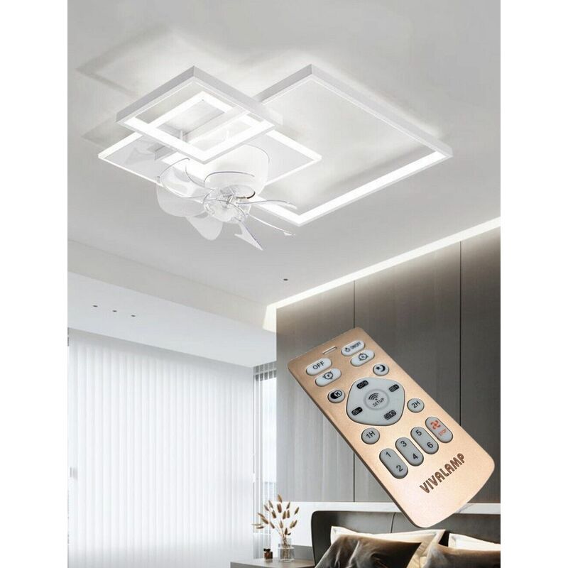 Plafoniera moderna a led con ventilatore da soffitto cambia 3 luci dimmerabile con telecomando Meravigliosa Plafoniera da Soffitto dal Design moderno che può avere un ampia gamma di applicazioni: Ottima soluzione per Stanza da Letto, Cucina, Soggiorno, Sala pranzo, Stanza dei bambini. Valida sia per la sua illuminazione a led, ma anche al dispositivo di ventilazione a 6 Velocità. Le eliche possono girare sia in senso orario che anti-orario. Velocità del vento regolabile: la velocità del vento del ventilatore a soffitto a LED può essere regolata in 6 livelli (alta velocità, media velocità, bassa velocità), le luci della ventola possono far circolare l'aria nella stanza, ridurre la differenza di temperatura tra l'alto e il basso e offrire uno spazio confortevole a risparmio energetico. Sorgente di protezione degli occhi LED di alta qualità: la nostra plafoniera a LED con ventola soddisfa rigorosi standard di test, luce morbida, nessun abbagliamento, nessuna interferenza ad alta