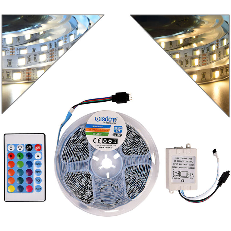 Striscia led 120 led per metro luce bianca e naturale ip20 10-16w per metro Striscia led bifunzionale con luce sia 6000k che 4000k, 120 led per metro e potenza 10/16w al metro in base al colore di luce Alimentazione a 12v e grado di protezione ip20