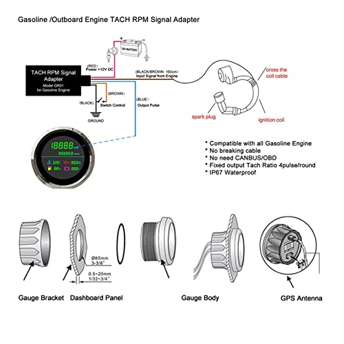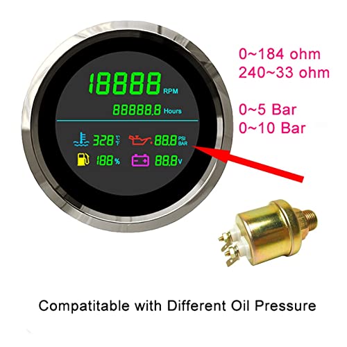Parti di ricambio 6 in 1 85mm Lcd. Tachimetro multifunzione Livello del carburante Acqua Temperatura Acqua Temp Pressione del Voltmetro A misura del misuratore dell'ora misura adatta for la macchina f