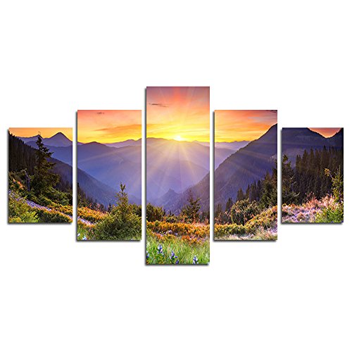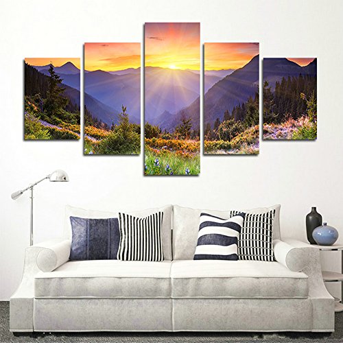 5 Parti Wall Pittura d'Arte Le Montagne E L'Imposizione Domenica La Foto Stampa Su Tela Di Canapa Foto Paesaggio Per Decorazione Decorazione Regalo Decorazione(50"W x 28" H, Senza telaio) CrmOArt