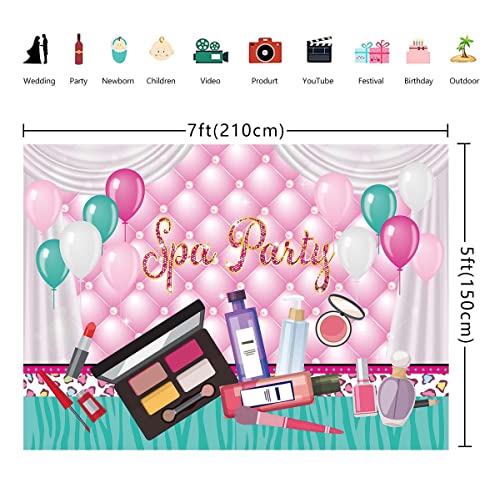 Spa Party Backdrop 7x5FT Rosa Trucco Tema Fotografia Sfondo per Donne Spa Giorno Ragazze Trucco Festa di Compleanno Decorazioni Foto Puntelli