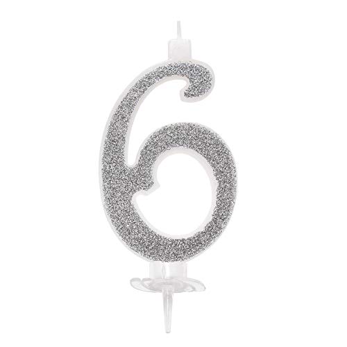 Party & Co. Candele per Torta Compleanno Numero Glitter Argento Maxi 13 cm con piedistallo (6)