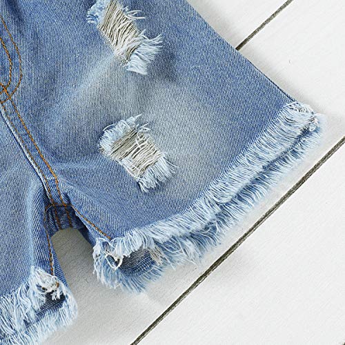 Party Chili Neonata 2 pezzi abiti estivi con orlo arricciato a maniche corte con jeans strappati corti vestiti (3-4 anni, Rosa)