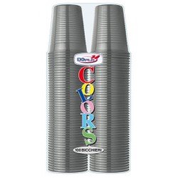 Big Party Coordinato Monocolore Argento per Feste E Eventi - Kit n°9 CDC - (100 Piatti, 100 Bicchieri, 100 TOVAGLIOLI)