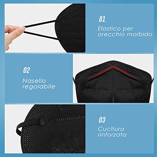 PARTY MONSTER Mascherine FFP2, Mascherine ffp2 nere 20 Pezzi Certificate CE 5 Strati Senza Valvola