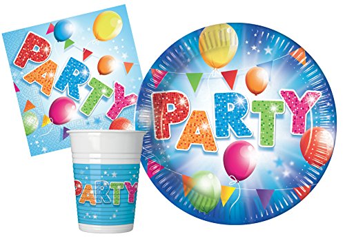 Kit Party Tavola Fabulous Party per 8 persone (36 pezzi: 8 piatti carta Ø23cm, 8 bicchieri plastica 200ml, 20 tovaglioli carta 33x33cm)