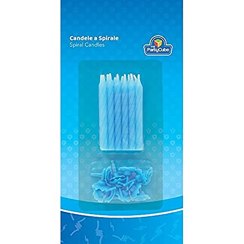 PartyCube-Set 12 Candeline Azzurre con Supporto, 33284