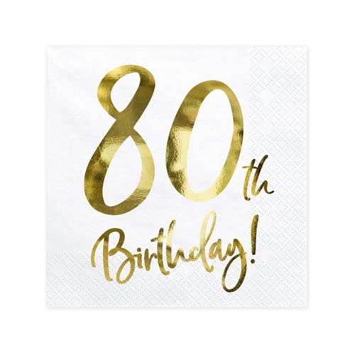 PartyDeco Tovaglioli di carta bianca con la scritta 80th Birthday- 80° compleanno decorazioni per il compleanno rotondo tovaglioli decorativi fazzoletti di carta stampati Tabella