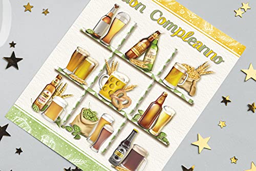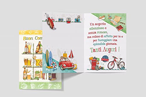 Il Biglietto, in cartoncino biodegradabile e completamente Made in Italy, viene presentato con una stampa serigrafica in rilievo della scritta "Buon Compleanno" accompagnata dalla stampa di una griglia con diverse pietanze e all'interno del biglietto, troveremo il messaggio di auguri che cita "Un auguio silenzioso e senza rumore, ma colmo di affetto per te e per festeggiare una splendida giornata. Tanti Auguri!"