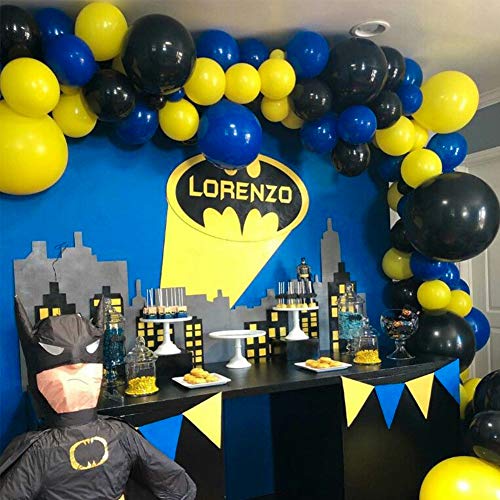 PartyWoo Batman Compleanno 80 Pezzi Palloncini Opachi Confezione di Palloncini Gialli Palloncini Neri Palloncini Blu Reale per Batman Decorazioni, Kit Minions Compleanno, Pokemon Festa Compleanno