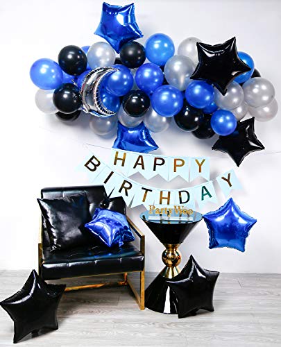 PartyWoo Palloncini 55 Pezzi Palloncini Compleanno 12 Pollici Palloncini Lattice & 18 Pollici Palloncini Foglio Palloncini Festa Decorazioni per Compleanno Battesimo - Blu & Nero & Argento