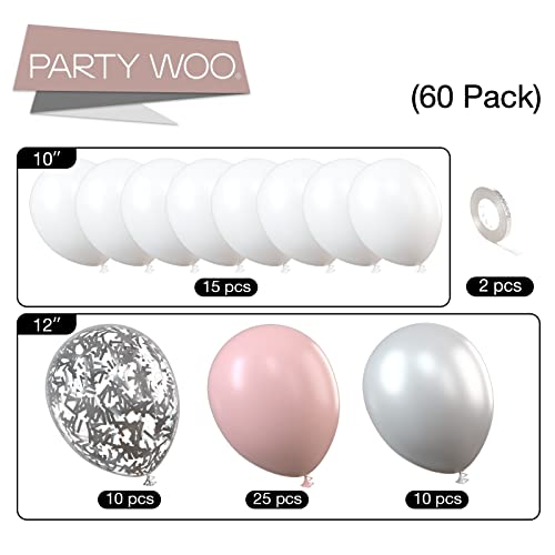 PartyWoo Palloncini rosa argento e bianco, 60 palloncini in lattice rosa pallido, palloncini bianchi, palloncini argentati, palloncini coriandoli per compleanno, rosa e argento festa di nozze, 30,5 cm