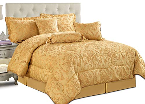 Parure da letto, trapunta con federe coordinate, in jacquard, 7 pz, Alluminio, Gold, King