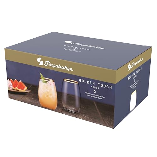 PASABAHCE Amber Confezione 6 Bicchieri, Vetro, Trasparente con Bordo Oro, 35 cl