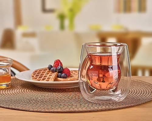 Pasabahce Lucky Cat Bardak doppia parete - 200 cc, tazze da caffè in vetro doppio, calici isolanti, design carino gatto tazza per gli amanti del caffè, tazze in vetro trasparente, tazza per amanti dei