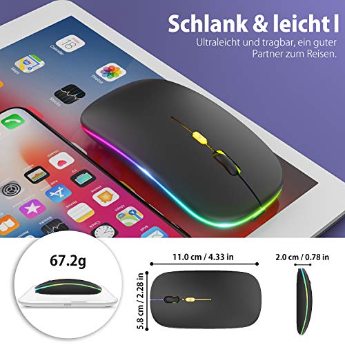 PASONOMI Mouse Wireless Ricaricabile Mouse Silenzioso Con luce LED Ricevitore USB di tipo C per PC, Laptop, Mouse Senza Fili da Viaggio Portatile (Nero)