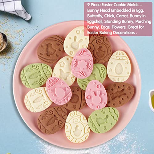 【Design a tema pasquale】 Questi stampi per biscotti in plastica sono progettati in 9 forme diverse, tra cui conigli di varie forme, uova di pasqua, ecc.che possono offrirti una varietà di forme di biscotti ed esperienze di novità, i modelli ricchi di possono soddisfare le tue diverse preferenze.