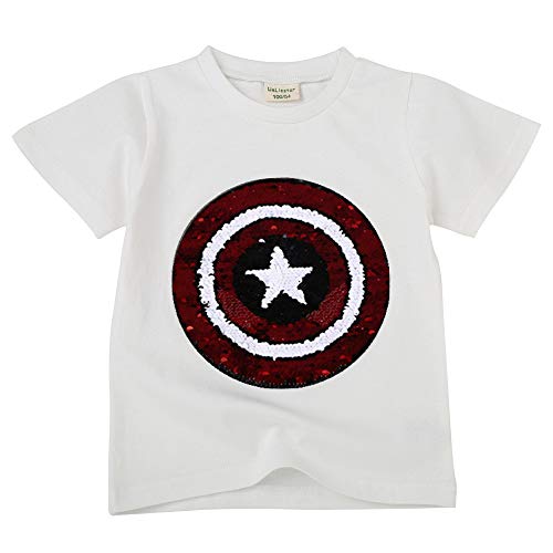 I pass Ragazzo Ragazza Superhero Maglietta Paillettes Reversibili Magia T-Shirt di Cotone 3-8 Anni (110-150 cm)