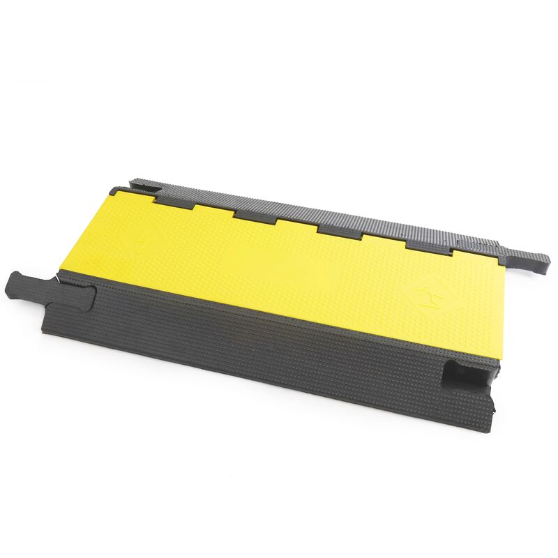 Passacavi in gomma elastomerica nera (EPDM) per la protezione dei 3 canali dei cavi elettricamente conduttori a livello del suolo. Rampa di protezione da 1 metro con grande resistenza al peso. Il suo efficace sistema di connessione ad incastro modulare rimovibile consente di collegare più pressacavi per ottenere la lunghezza desiderata, evitando lo slittamento e l'autobloccaggio indesiderato. Copertura superiore in polipropilene giallo resistente all'acqua con grande durata che nasconde e protegge i cavi all'interno. Caratteristiche del prodotto: CARATTERISTICHE: I colori utilizzati per la realizzazione dell'occhiello garantiscono una migliore visibilità di notte e in ambienti poco illuminati. Su tutta la superficie, comprese le rampe laterali e la base centrale in gomma antiscivolo di prima qualità industriale, sono presenti strisce testurizzate che consentono il passaggio dei veicoli senza scivolare. Il coperchio superiore giallo include un sistema di cerniere in acciaio