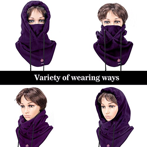 Passamontagna tattico, maschera completa per viso in pile caldo, per sport invernali all'aperto, resistente al vento, con cappuccio, Uomo, purple, Taglia unica