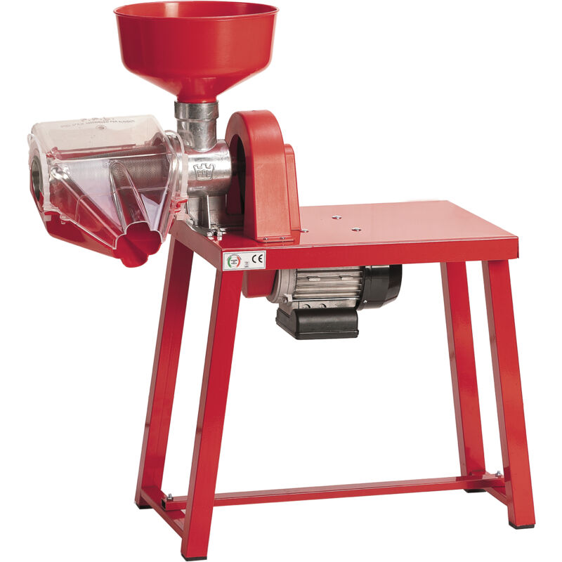 Art. TS plast con banco. Motore potenza 0,45 Hp Filtro in ferro stagnato. Gocciolatoio in polipropilene copolimero per alimenti. Imbuto in polipropilene HD. Vite senza fine in acetalica per alimenti. Banco da lavoro in acciaio verniciato