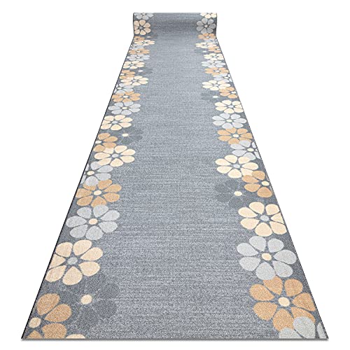 Passatoia Corridoio MARGARETKA fiore di margaret antiscivolo, per cucina, corridoio, soggiorno, robusto, moderno, grigio 90x470 cm