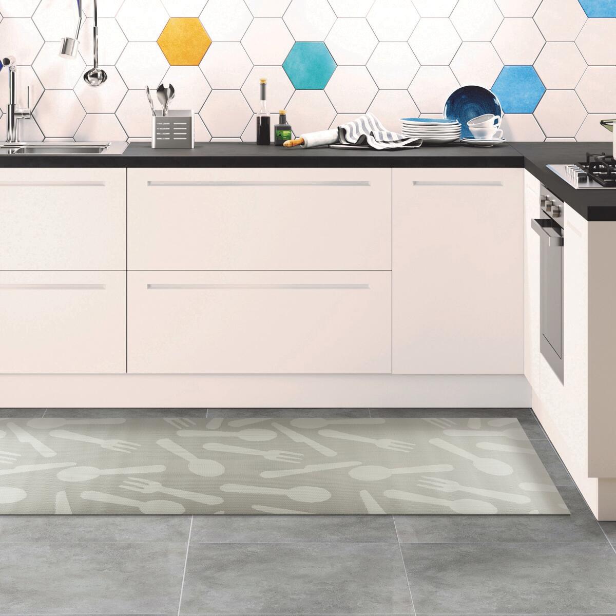 Tappeto Industry: Tappeto tessuto in textilene con fondo in 100% PVC antiscivolo, con bordo termosaldato, mis. 50x280 cm. Resistente, realizzato in materiale sintetico, con antiscivolo in PVC e con bordo termosaldato. Ideale per una cucina moderna e industriale. Facile da pulire, le macchie possono essere rimosse semplicemente con una spugna o un panno umido