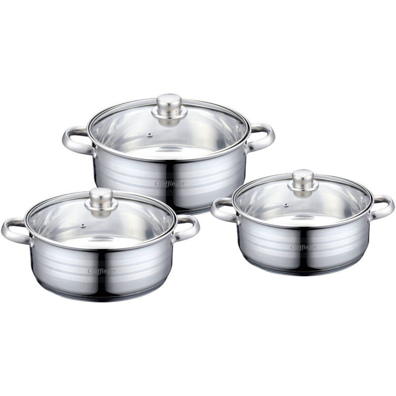 Queste pentole di alta qualità sono indispensabili per bollire uova, pasta o per preparare una pentola davvero buona. Questo set contiene 3 pentole di diverse dimensioni in acciaio inossidabile con relativi coperchi in vetro. - Poteri con coperchi - 3 diverse dimensioni - acciaio inox e vetro Specifiche: Materiale: acciaio inossidabile e vetro Diametro delle pentole: 26/28/30 cm Numero di parti: 6 pezzi