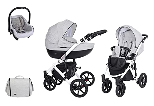 Passeggino 3in1 2in1 Set carrozzina Isofix + accessori Selezione colore Mila Black di ChillyKids Silver White 06 3in1 con seggiolino